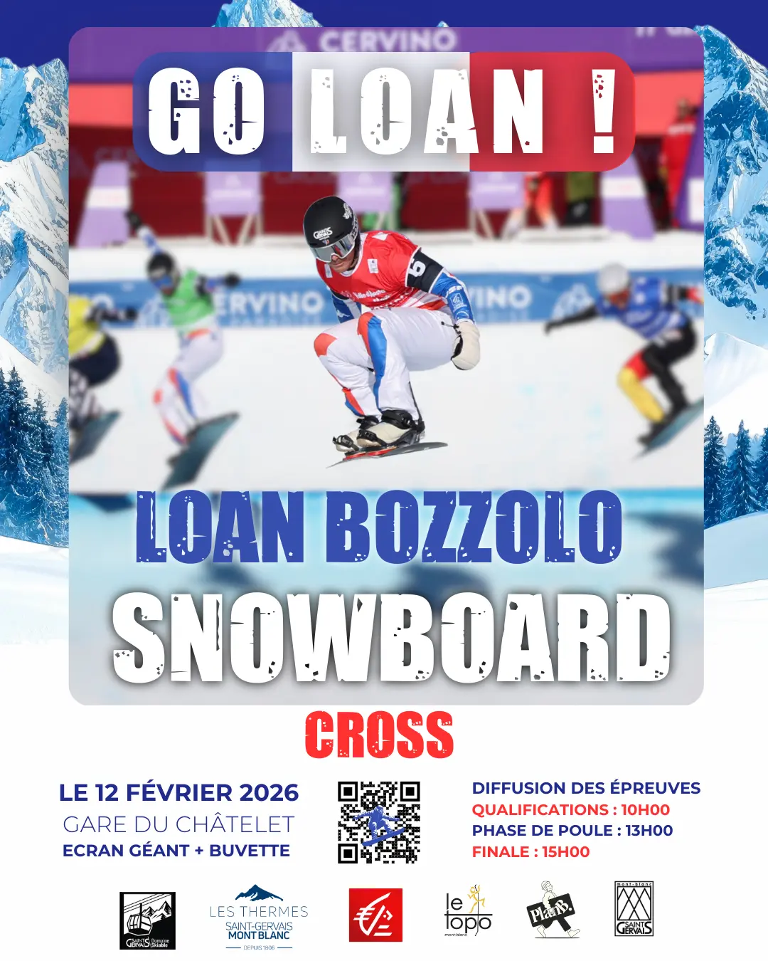 The energy of Saint-Gervais doesn't stop there, as you can also support our snowboarder at various locations throughout the town that are getting involved for the occasion.