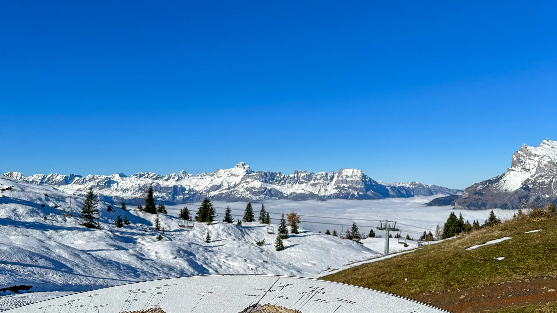 Panoramic view 360 ° on Mont Blanc, the chain of Fiz and the Aravis